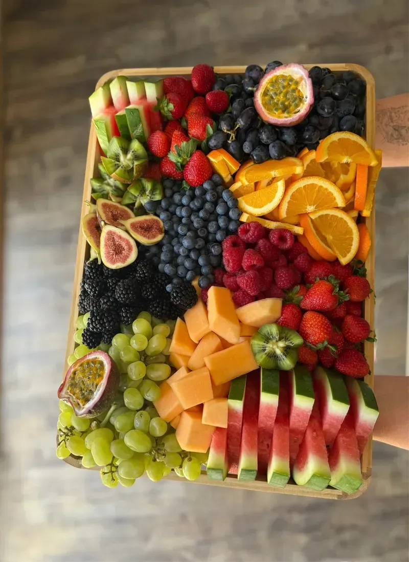 A platter board from Events By Ad offers several benefits that make it a popular choice for gatherings and even casual meals: